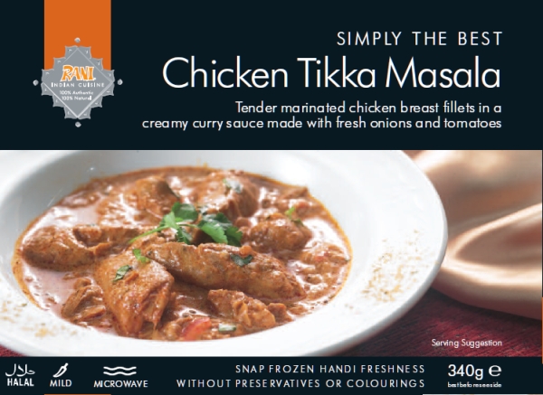 Who has not heard of this dish? Again Rani does this in an authentic way. The boneless chicken breast fillets are marinated and baked in a subtle blend of spices, herbs with yoghurt, a ' Tikka sauce ' prepared at our premises and is delicious in its own right. The ' Masala ' is a mild sauce made using fresh cream, natural yoghurt, tomatoes and many exotic spices.